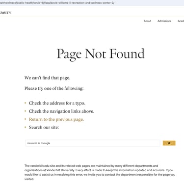 Alas, as of the date this was published, the link to the Rec Center from the Health and Safety page had not been updated to their new link. If you look at the website address (in the gallery for posterity) it is an old one linked to covid-19; this speaks to the lack of alignment. I think your website reflects how the university works. And in this case, it seems that the rec center is an afterthought for both areas – athletics and student affairs.